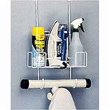 Constructed of heavy steel with a white epoxy finish, this unit can hang over the door, OR can also be mounted onto the wall or your door. Has two side bottle holders and can also hold your heating iron. Can hold any "T" frame style iron board. (Mounting hardware is included). 12.5 x 4.5 x 12.625"